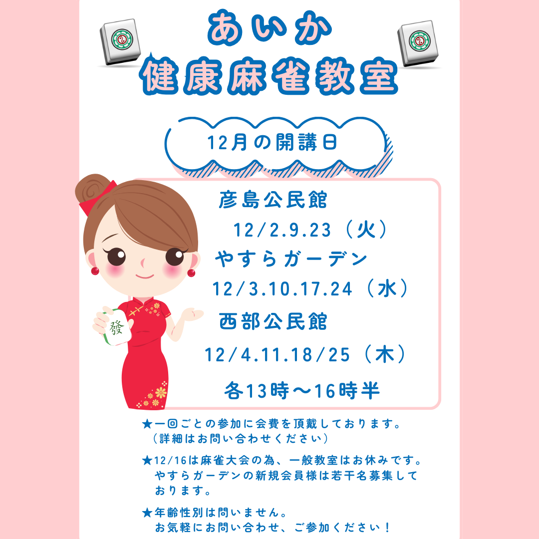 会場都合により、毎週金曜日13時~16時半に開催いたします。